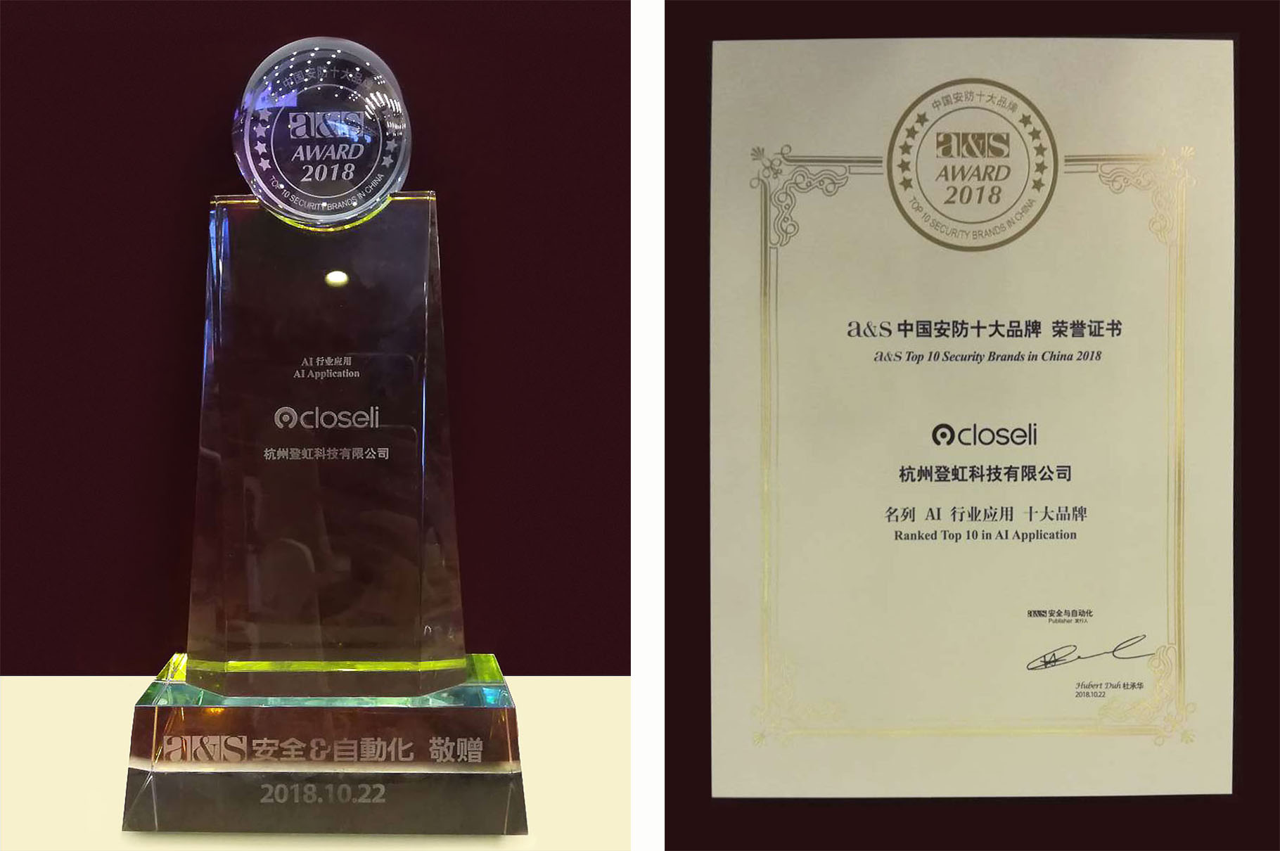 10月22日,由a&s传媒发起的2018年“中国安防十大品牌”颁奖典礼在北京举行。凭借着在视频云领域二十多年深厚的市场及技术积累,Closeli 登虹...