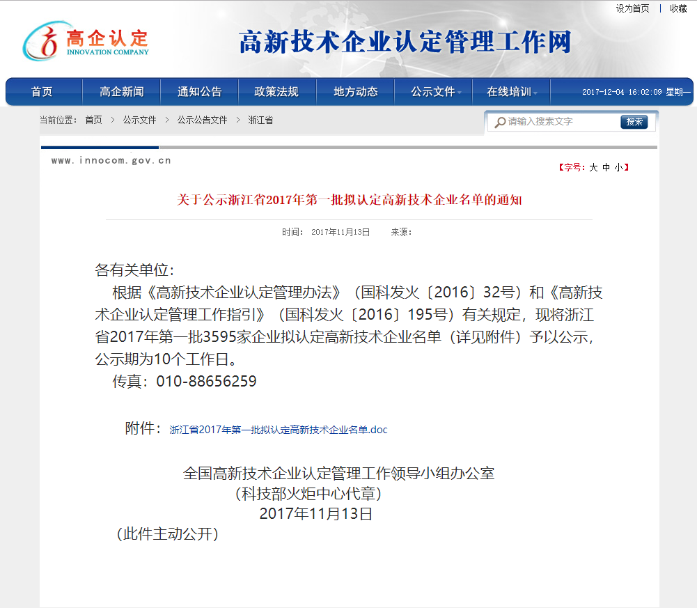 登虹科技成为浙江省2017年第一批拟认定高新技术企业