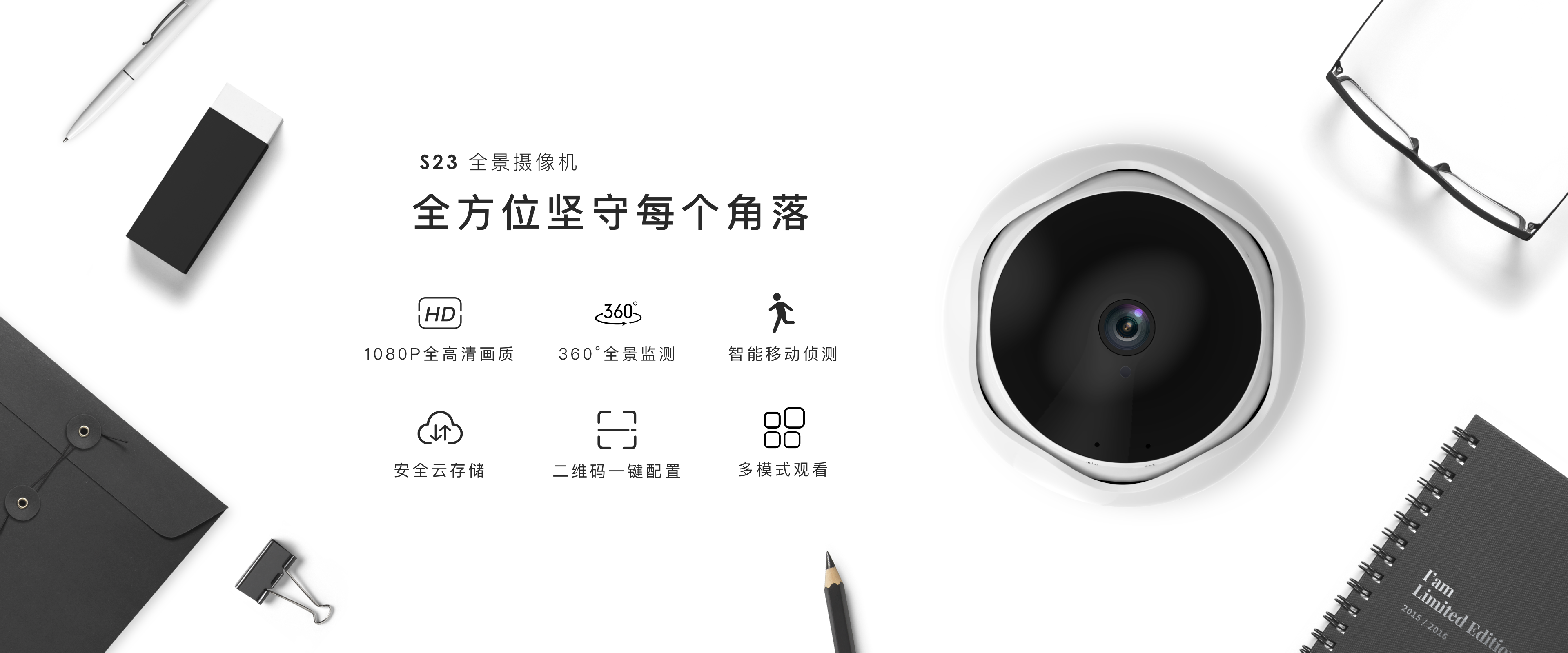 S23全景摄像机配备了360°全景镜头,可以轻松覆盖100㎡内的更多区域,可视范围能完整覆盖小型商铺,最大限度减少拍摄死角,安全不再留盲区